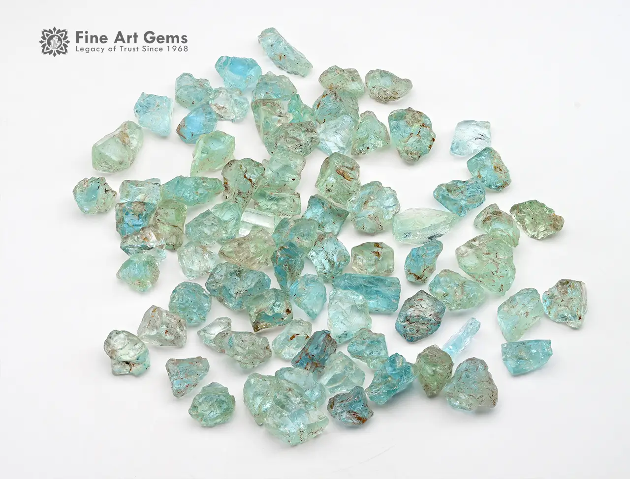 This 53 g lot of rough aquamarine crystals from Madagascar features a natural, unpolished rough ranging in size from 4 mm to 13 mm. The stones have a soft blue to bluish-green color, typical of high-quality aquamarine. Each piece is unique in shape and texture, making it perfect for collectors, crystal enthusiasts, or lapidary enthusiasts.