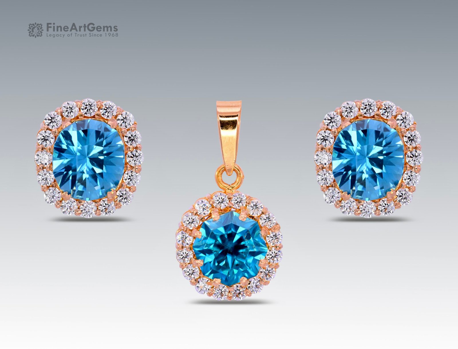 Stunning Blue Zircon Stud Earrings Pendant Gold Set
